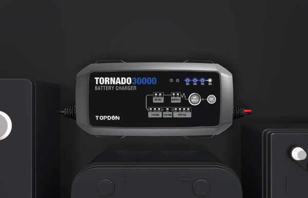 Tornado30000 is an upper-mid-level smart charger made for personal or commercial use. It’s made to revive 6V, 12V, and 24V lead-acid batteries as well as 12V and 24V lithium-ion batteries. This device supports a range of battery capacities from 50Ah to 1000Ah. With a 9-step smart charging method and 12 charging modes, the Tornado30000 provides unparalleled protection and charging capabilities for its users.